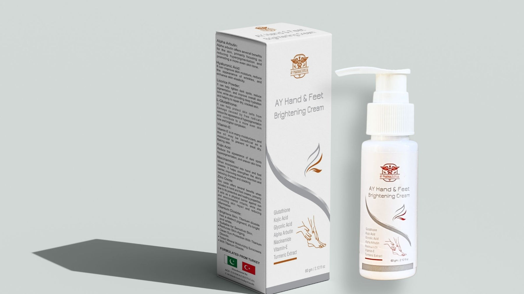 AY Hand & Feet Brightening Cream is a dermatologist-formulated solution designed to restore softness, brightness, and hydration to rough, dry, and pigmented skin. With a powerful blend of Glutathione, Kojic Acid, Alpha Arbutin, Niacinamide, Vitamin E, and Hyaluronic Acid, this cream works to lighten dark spots, improve texture, and deeply nourish your hands and feet.